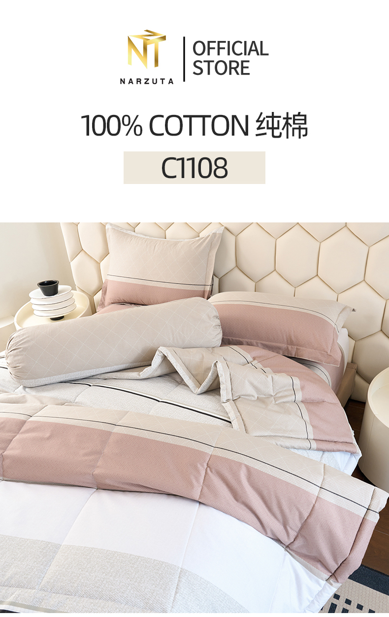 Cotton Series: King 4in1 included: Fitted Sheet 183*192*43cm + 2 Pillow Cases + 1 Bolster Case  King 5in1 included: Fitted Sheet 183*192*43cm + 1 King Comforter + 2 Pillow Cases + 1 Bolster Case Queen 4in1 included: Fitted Sheet 153*192*43cm + 2 Pillow Cases + 1 Bolster Case  Queen 5in1 included ...Read more