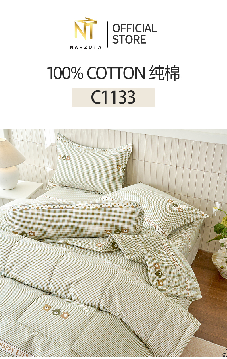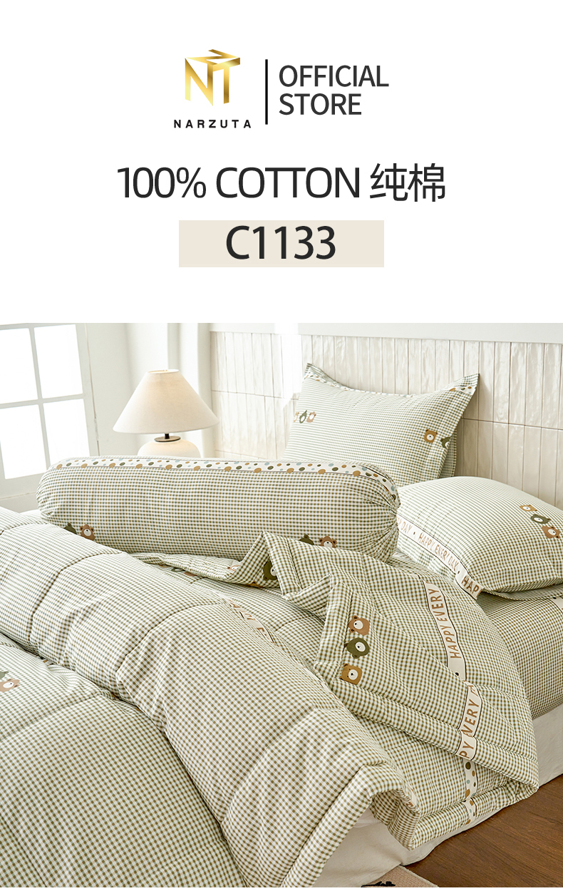 Cotton Series: King 4in1 included: Fitted Sheet 183*192*43cm + 2 Pillow Cases + 1 Bolster Case  King 5in1 included: Fitted Sheet 183*192*43cm + 1 King Comforter + 2 Pillow Cases + 1 Bolster Case King 5in1 included: Fitted Sheet 183*192*43cm + 1 King Quilt Cover + 2 Pillow Cases + 1 Bolster Case ...Read more