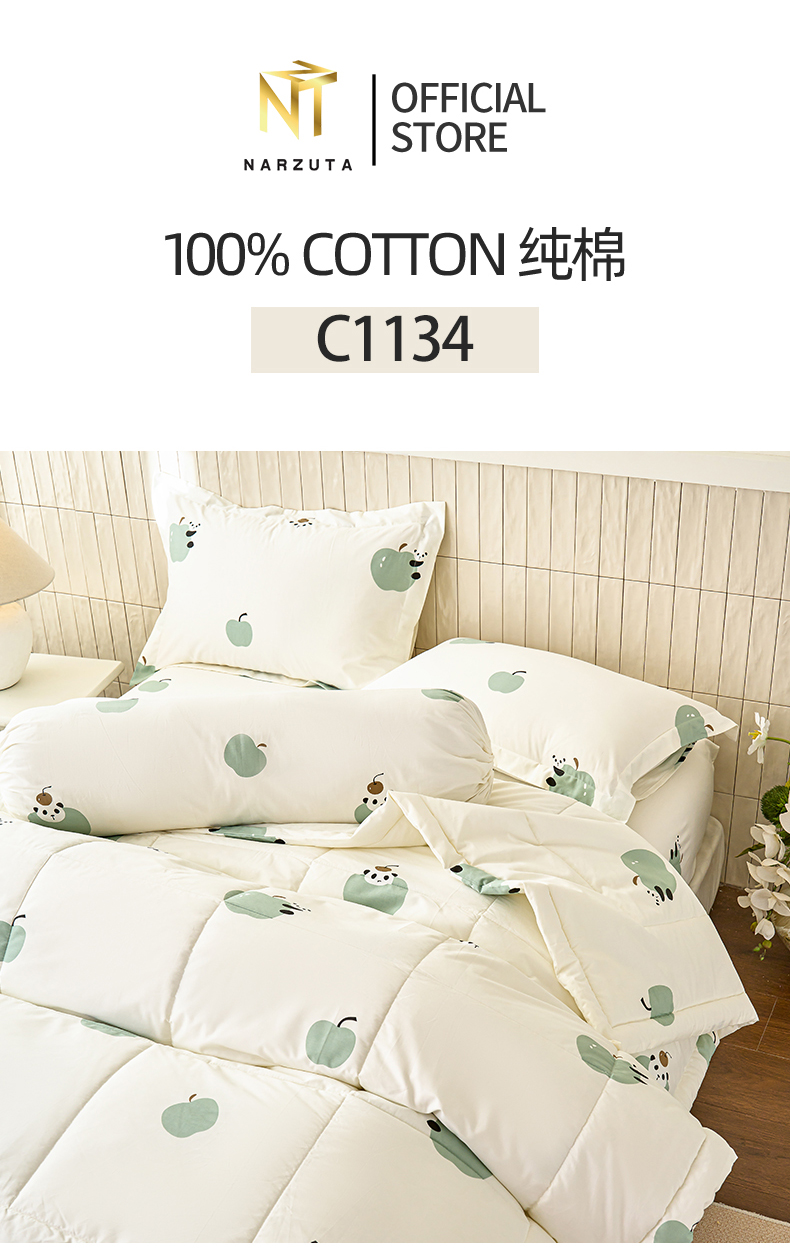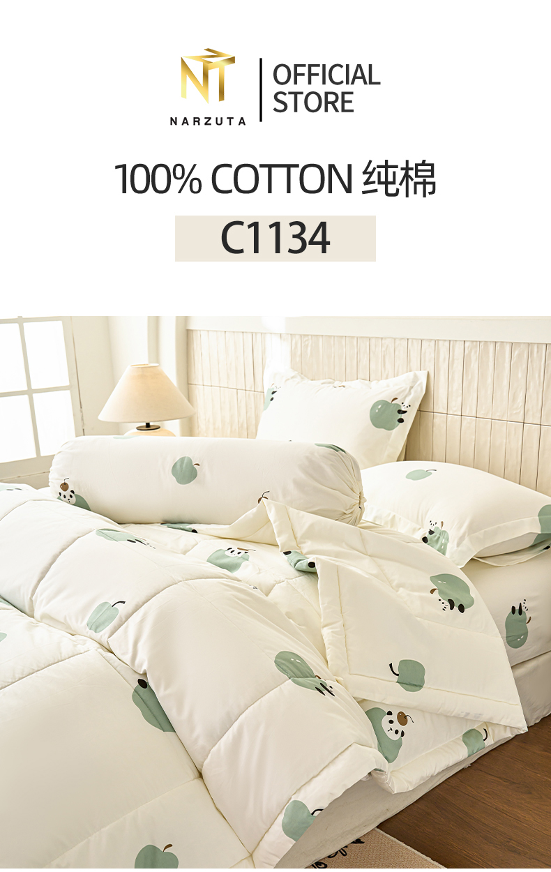 Cotton Series: King 4in1 included: Fitted Sheet 183*192*43cm + 2 Pillow Cases + 1 Bolster Case  King 5in1 included: Fitted Sheet 183*192*43cm + 1 King Comforter + 2 Pillow Cases + 1 Bolster Case King 5in1 included: Fitted Sheet 183*192*43cm + 1 King Quilt Cover + 2 Pillow Cases + 1 Bolster Case ...Read more