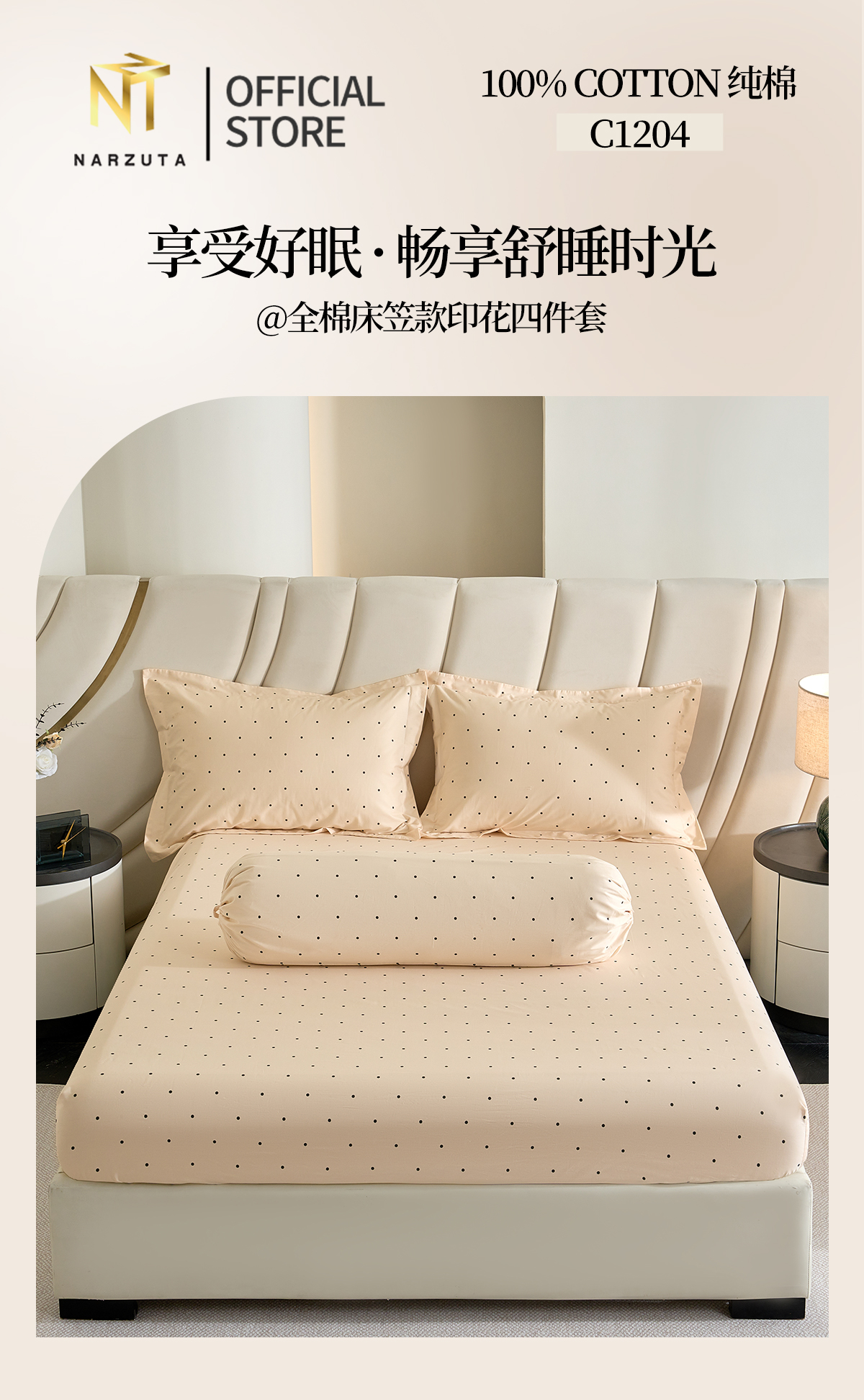 Queen 4in1 included: Fitted Sheet 153*192*43cm + 2 Pillow Cases + 1 Bolster Case