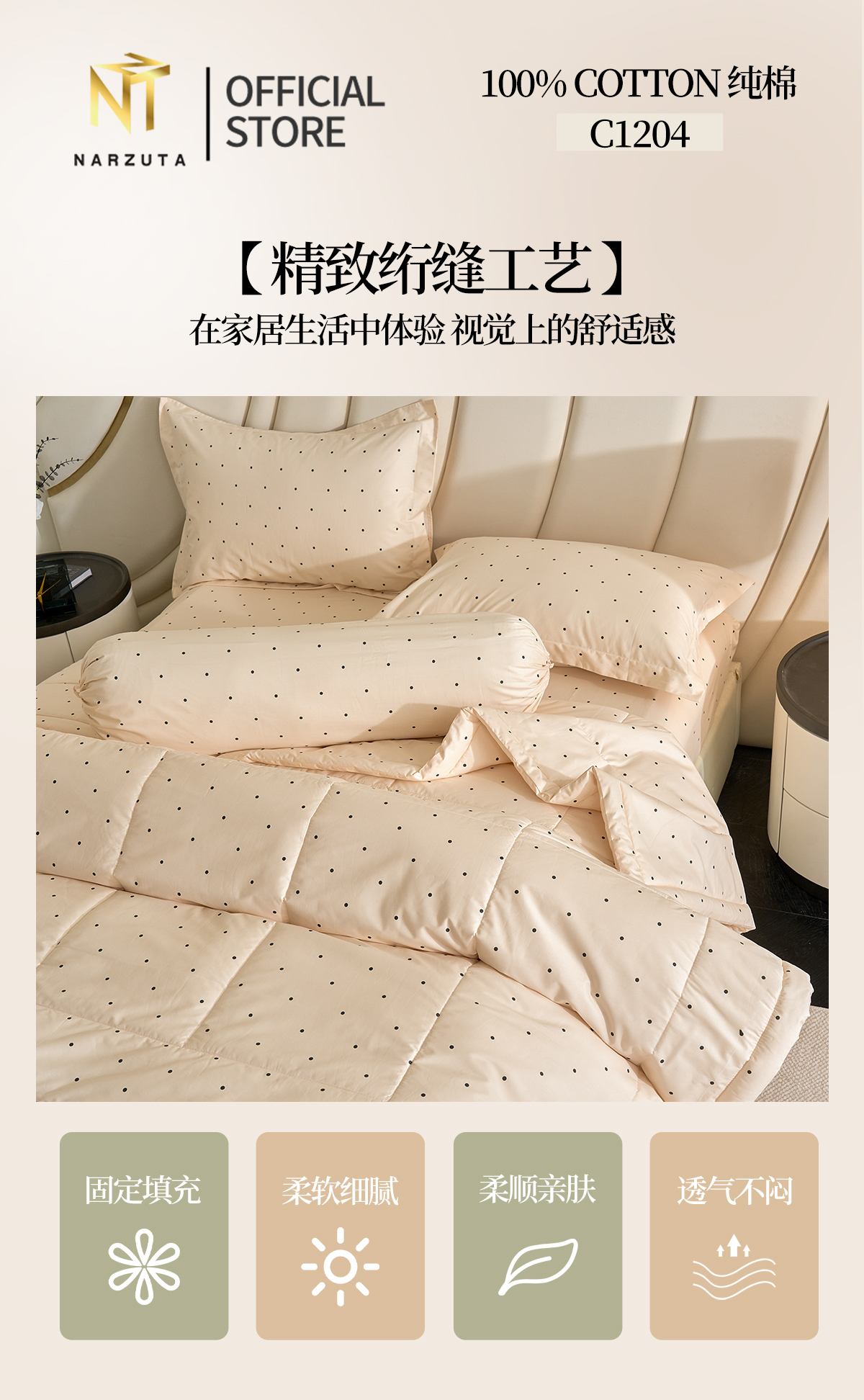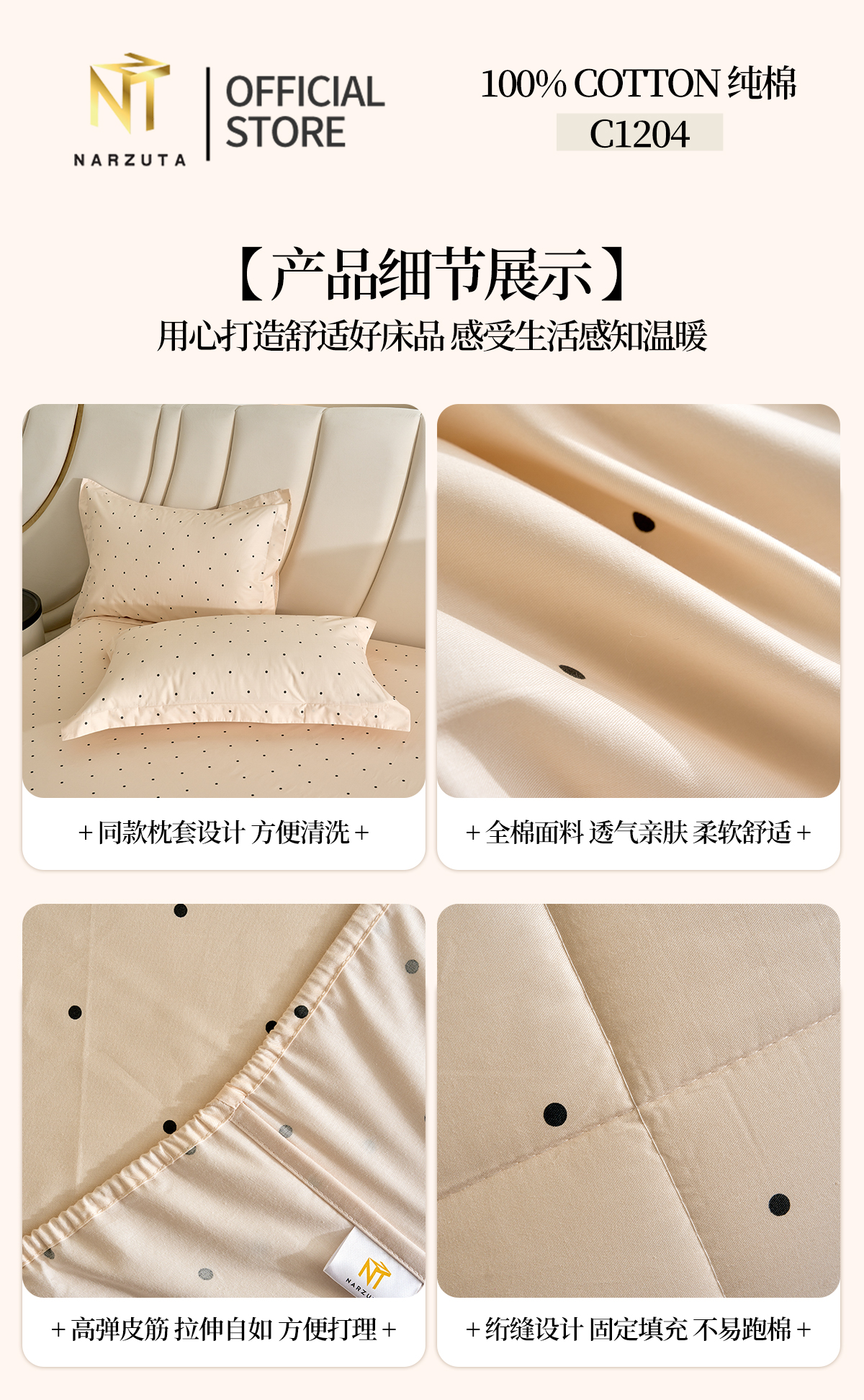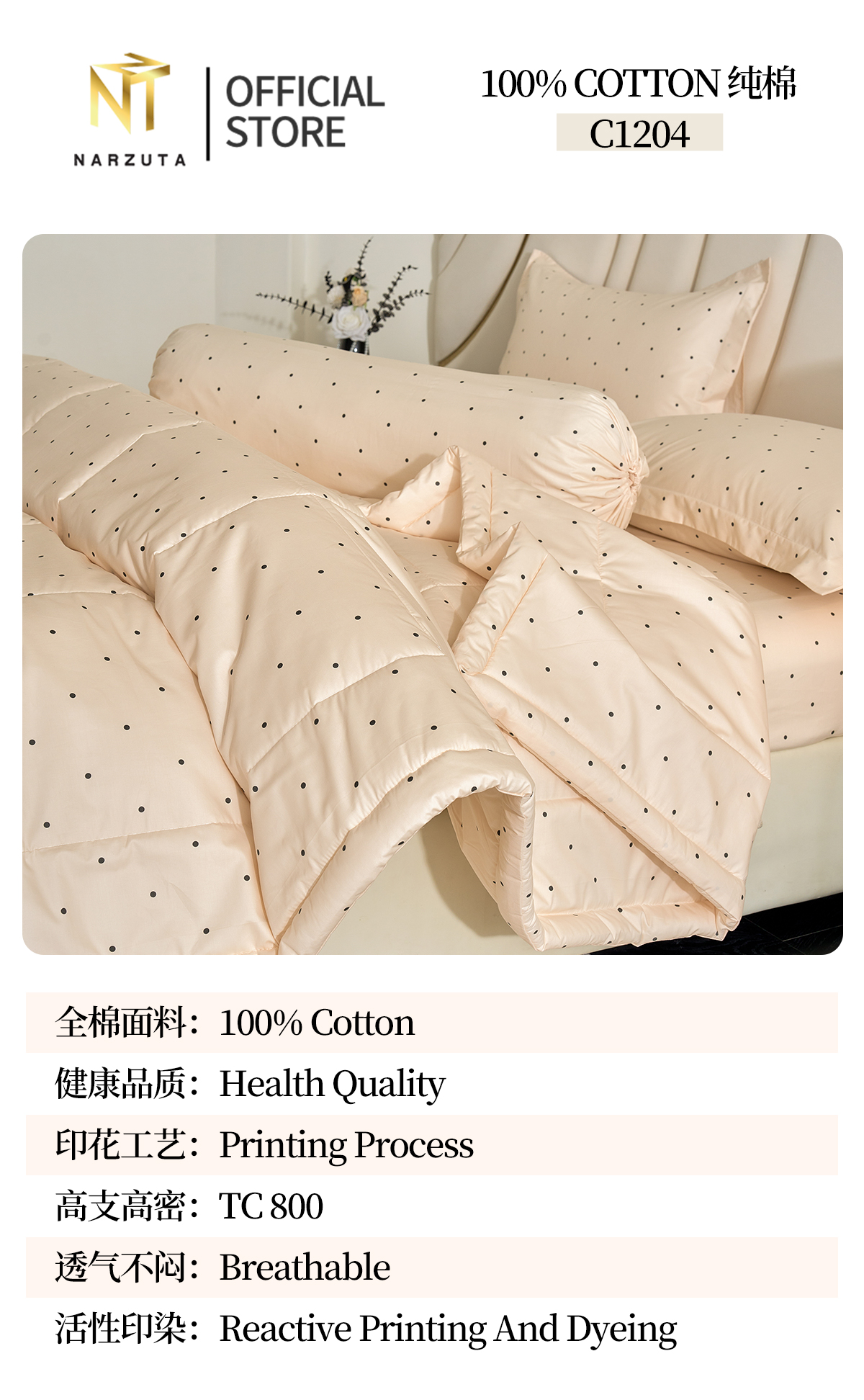 Cotton Series: King 4in1 included: Fitted Sheet 183*192*43cm + 2 Pillow Cases + 1 Bolster Case  King 5in1 included: Fitted Sheet 183*192*43cm + 1 King Comforter + 2 Pillow Cases + 1 Bolster Case Queen 4in1 included: Fitted Sheet 153*192*43cm + 2 Pillow Cases + 1 Bolster Case  Queen 5in1 included ...Read more