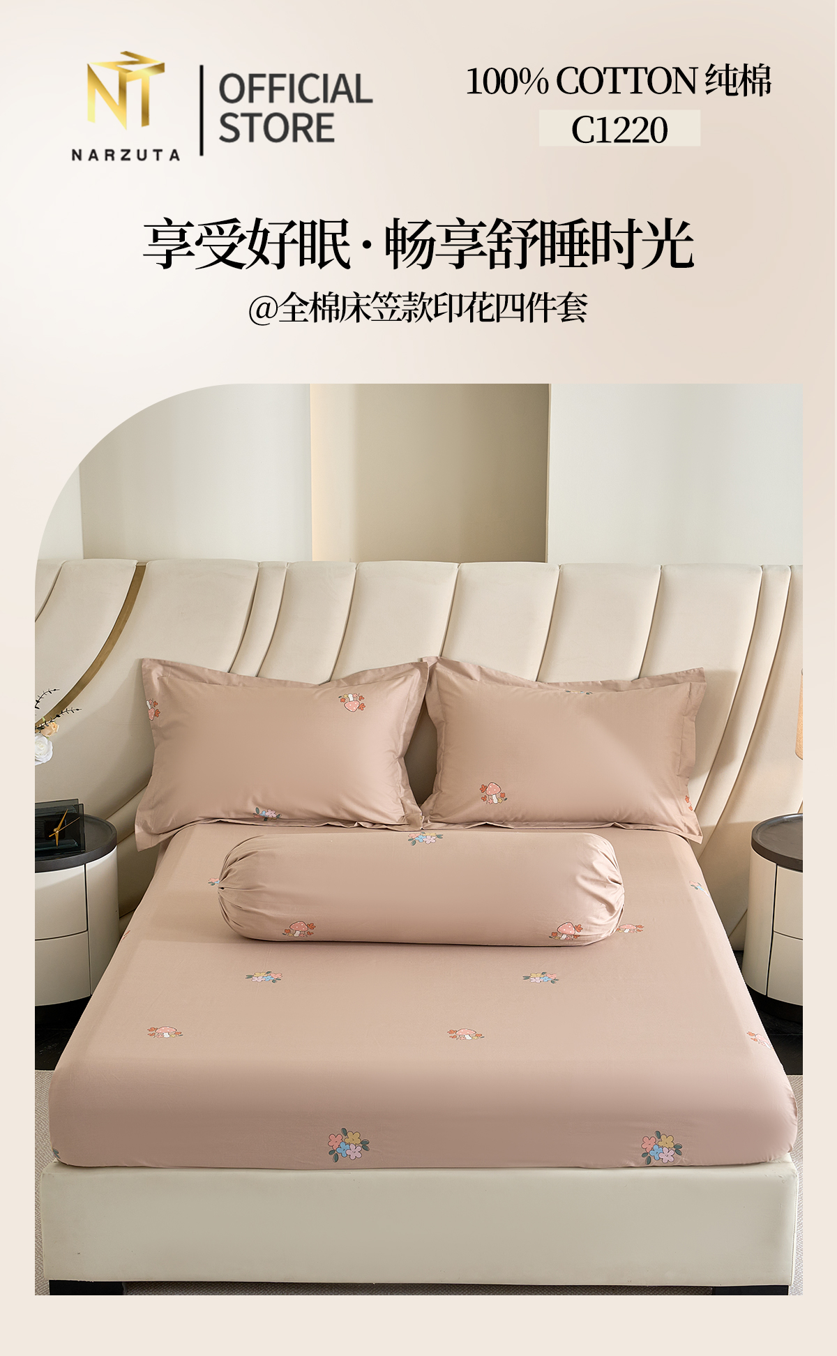 King 4in1 included: Fitted Sheet 183*192*43cm + 2 Pillow Cases + 1 Bolster Case