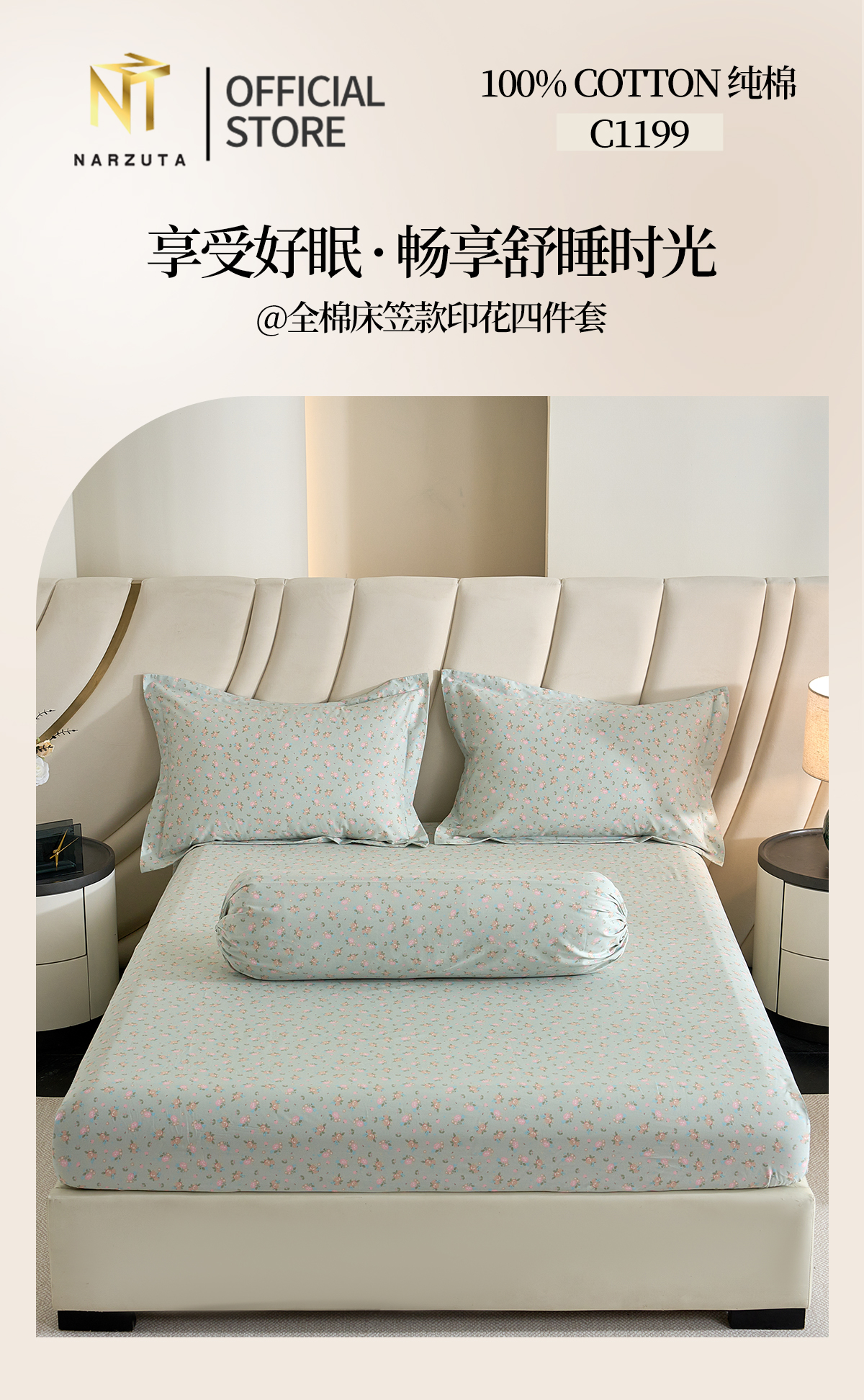 King 4in1 included: Fitted Sheet 183*192*43cm + 2 Pillow Cases + 1 Bolster Case