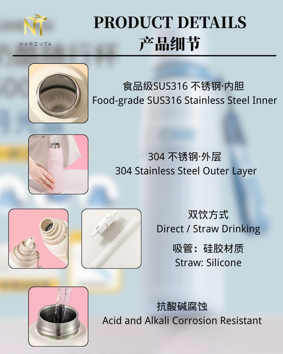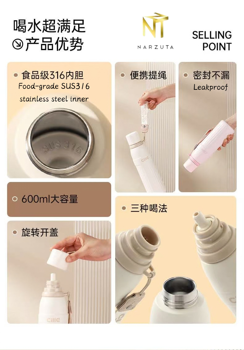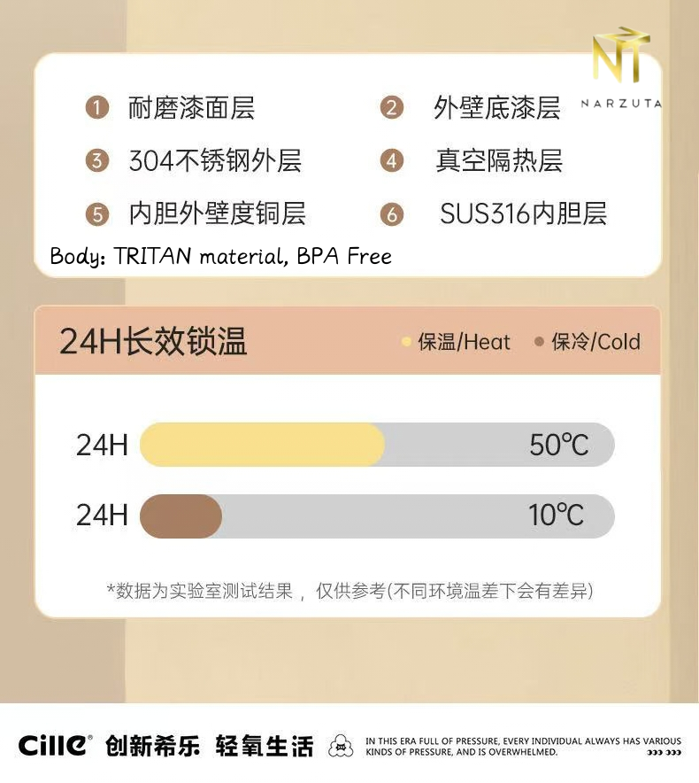 Body: TRITAN material, BPA Free (304 不锈钢·外层)