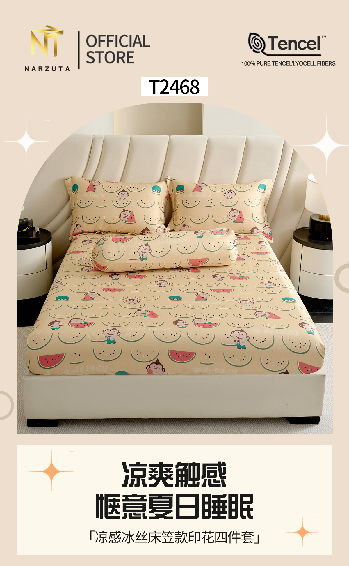Tencel Series: King 4in1 included: Fitted Sheet 183*192*43cm + 2 Pillow Cases + 1 Bolster Case  King 5in1 included: Fitted Sheet 183*192*43cm + 1 King Comforter + 2 Pillow Cases + 1 Bolster Case Queen 4in1 included: Fitted Sheet 153*192*43cm + 2 Pillow Cases + 1 Bolster Case  Queen 5in1 included ...Read more