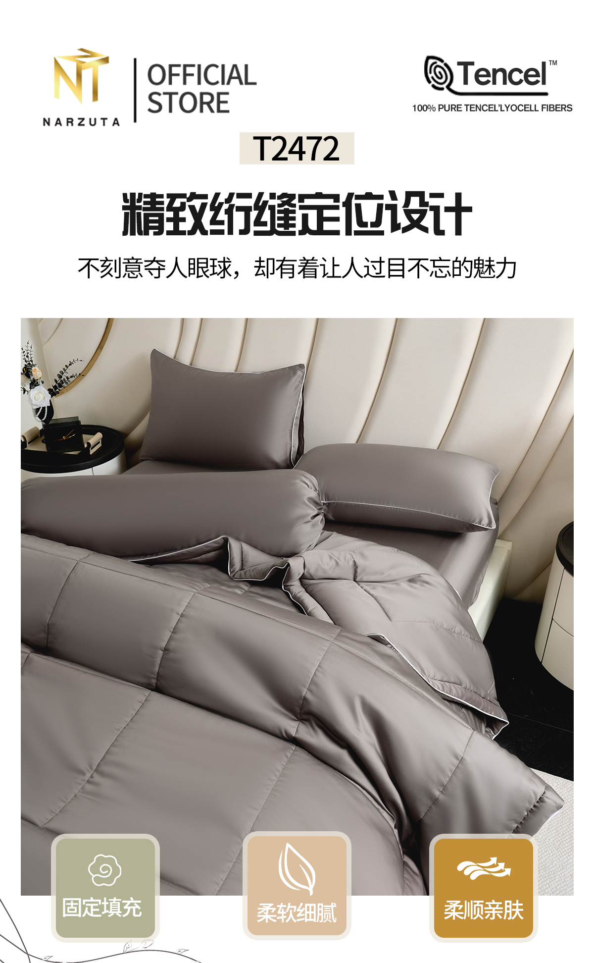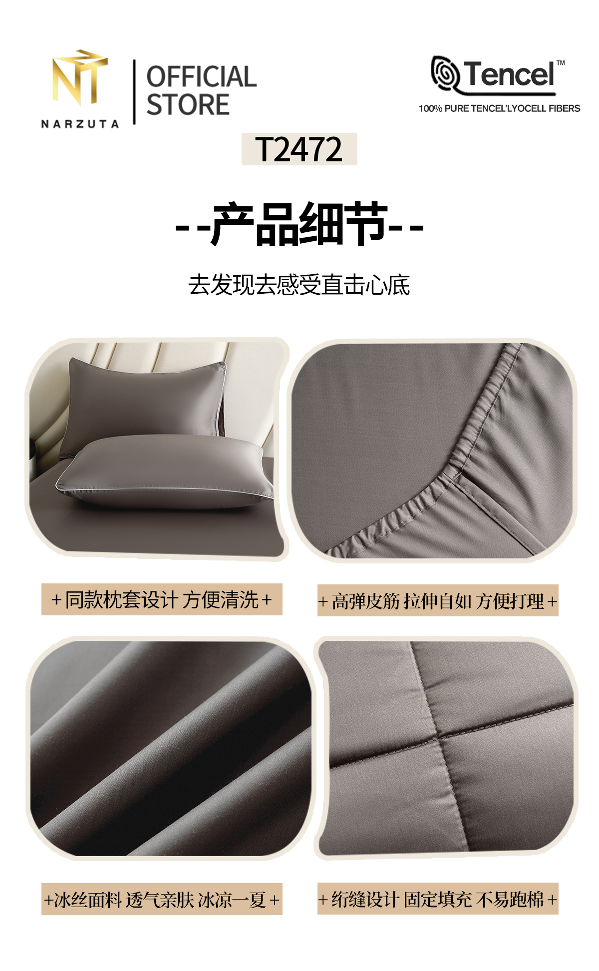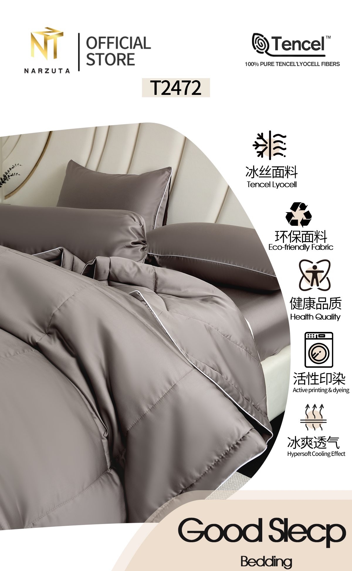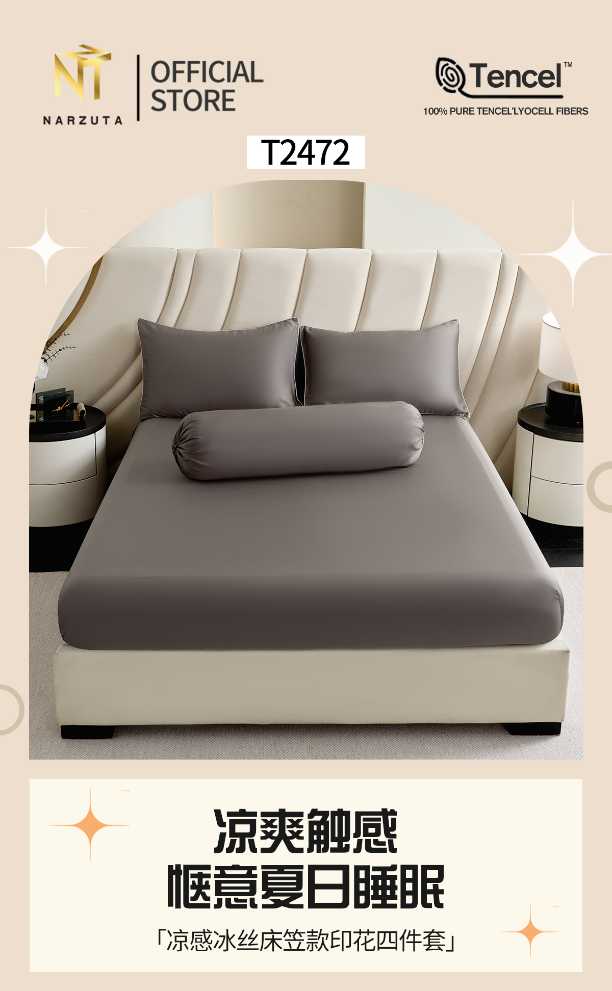 Tencel Series: King 4in1 included: Fitted Sheet 183*192*43cm + 2 Pillow Cases + 1 Bolster Case  King 5in1 included: Fitted Sheet 183*192*43cm + 1 King Comforter + 2 Pillow Cases + 1 Bolster Case Queen 4in1 included: Fitted Sheet 153*192*43cm + 2 Pillow Cases + 1 Bolster Case  Queen 5in1 included ...Read more