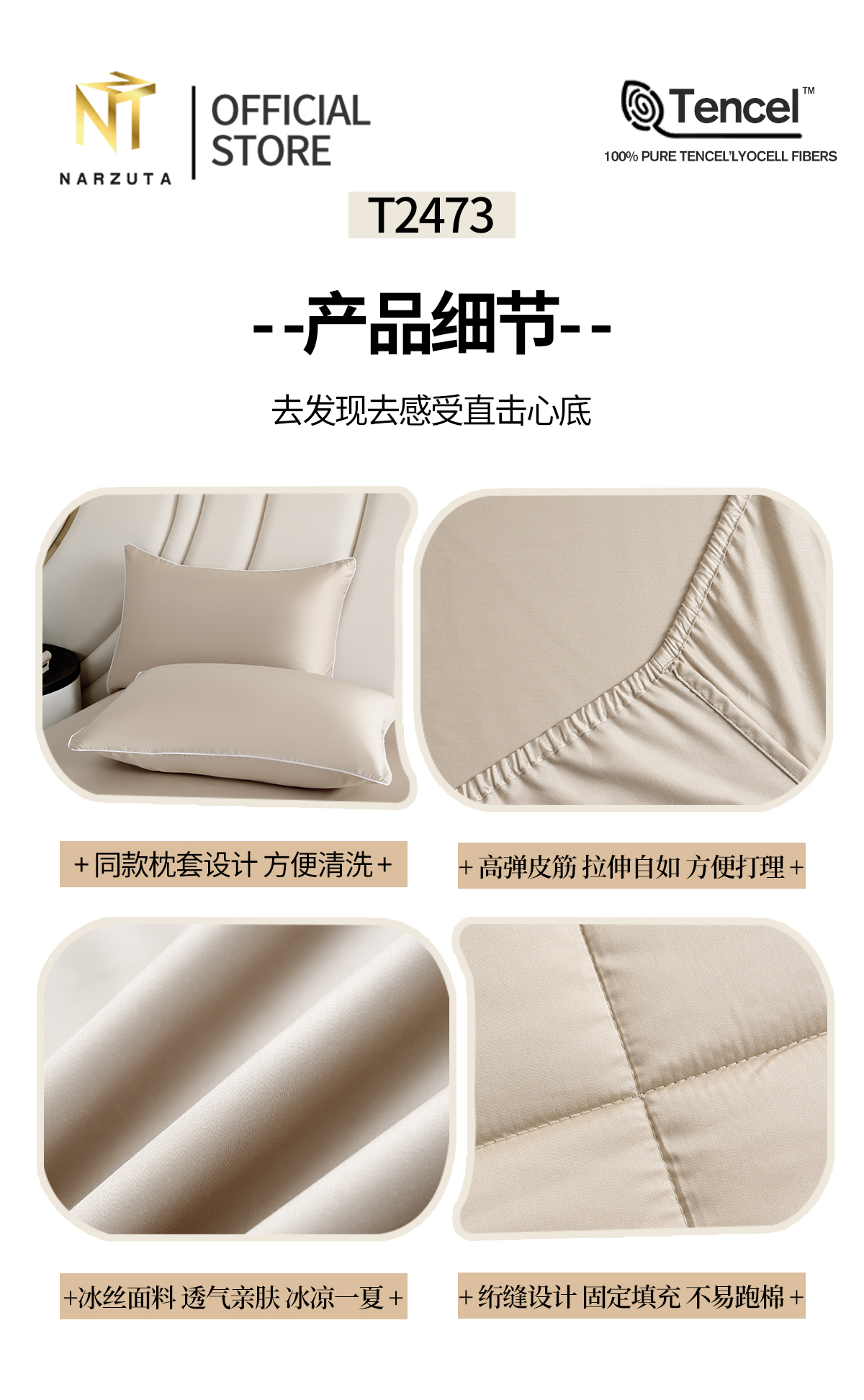Tencel Series: King 4in1 included: Fitted Sheet 183*192*43cm + 2 Pillow Cases + 1 Bolster Case  King 5in1 included: Fitted Sheet 183*192*43cm + 1 King Comforter + 2 Pillow Cases + 1 Bolster Case Queen 4in1 included: Fitted Sheet 153*192*43cm + 2 Pillow Cases + 1 Bolster Case  Queen 5in1 included ...Read more