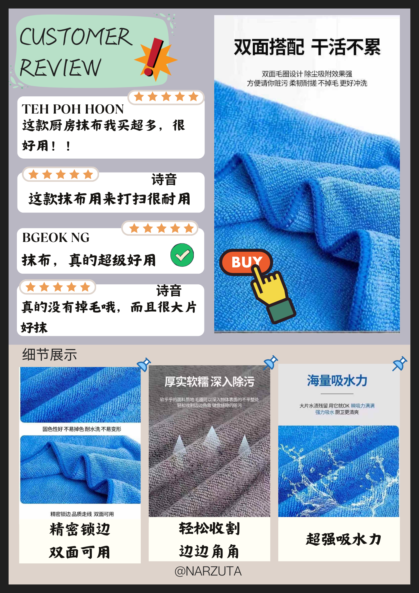 KITCHEN CLOTH / MULTI-PURPOSE CLOTH 1 PACK FOR 10PCS / 1 PACK FOR 20PCS (MIX COLOURS) Strong water absorbent cloth Effectively absorb dust Strong and wear-resistant and not easy deformed Suitable for dry and wet use in kitchen, toilet, car, window and more...     ...Read more