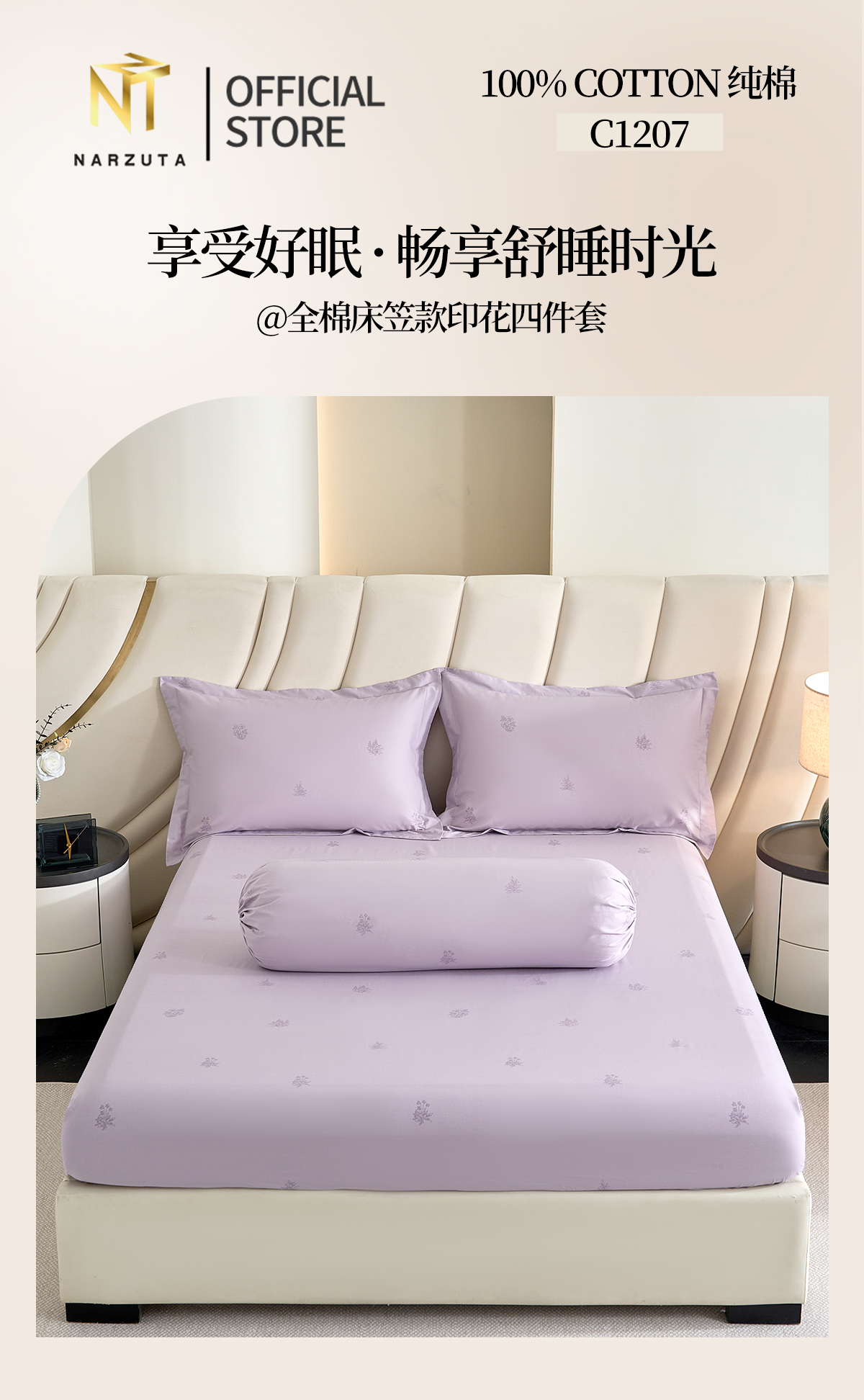 King 4in1 included: Fitted Sheet 183*192*43cm + 2 Pillow Cases + 1 Bolster Case