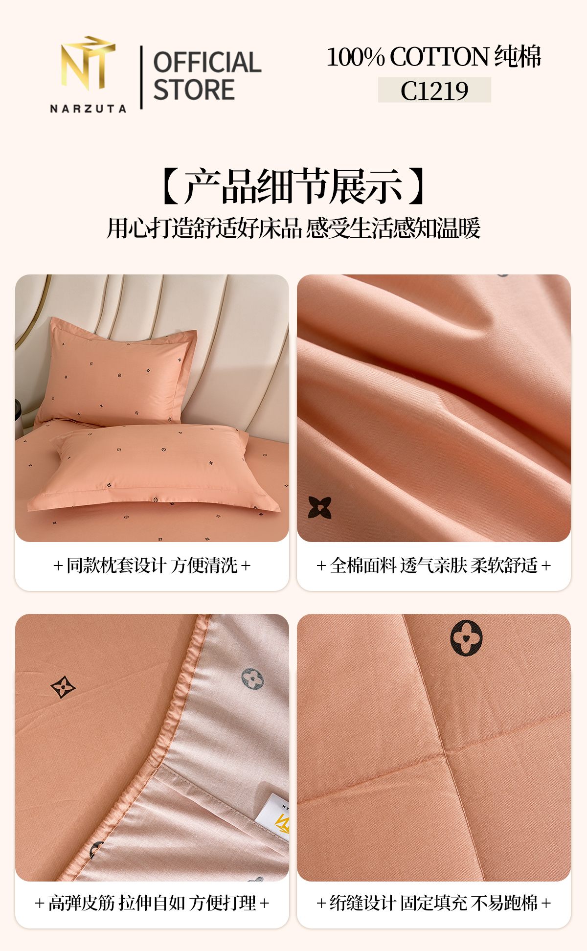 Cotton Series: King 4in1 included: Fitted Sheet 183*192*43cm + 2 Pillow Cases + 1 Bolster Case  King 5in1 included: Fitted Sheet 183*192*43cm + 1 King Comforter + 2 Pillow Cases + 1 Bolster Case Queen 4in1 included: Fitted Sheet 153*192*43cm + 2 Pillow Cases + 1 Bolster Case  Queen 5in1 included ...Read more