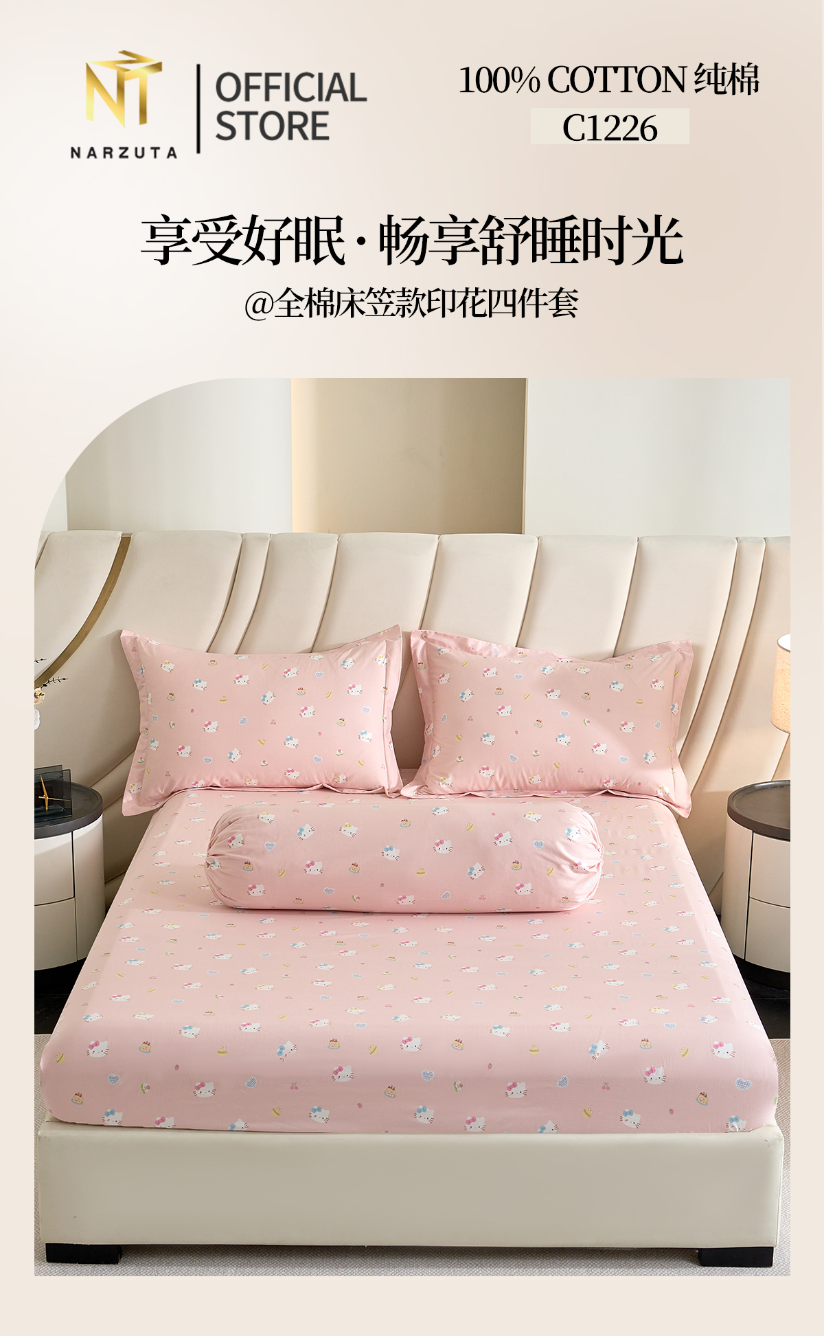 King 4in1 included: Fitted Sheet 183*192*43cm + 2 Pillow Cases + 1 Bolster Case