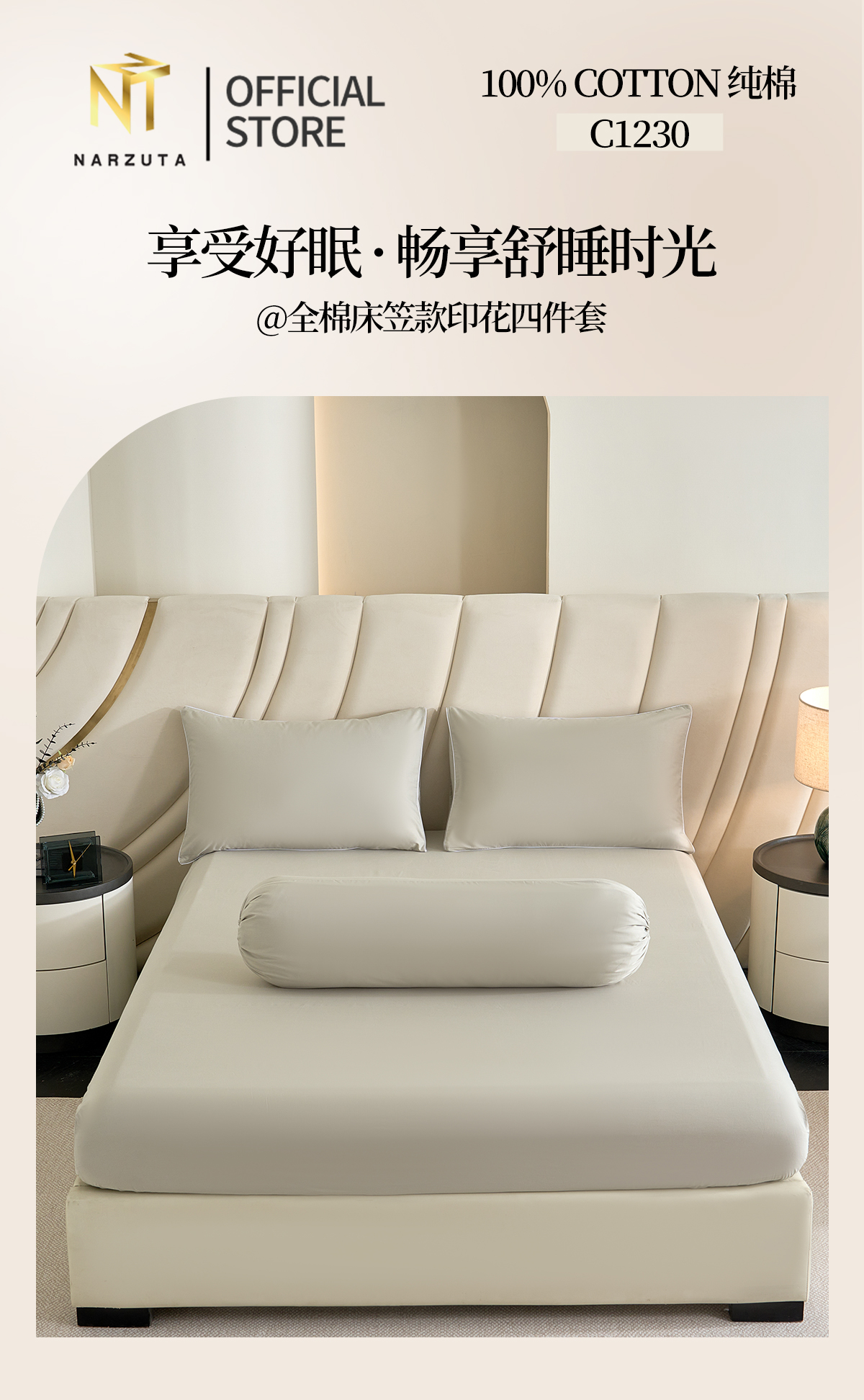 Queen 4in1 included: Fitted Sheet 153*192*43cm + 2 Pillow Cases + 1 Bolster Case