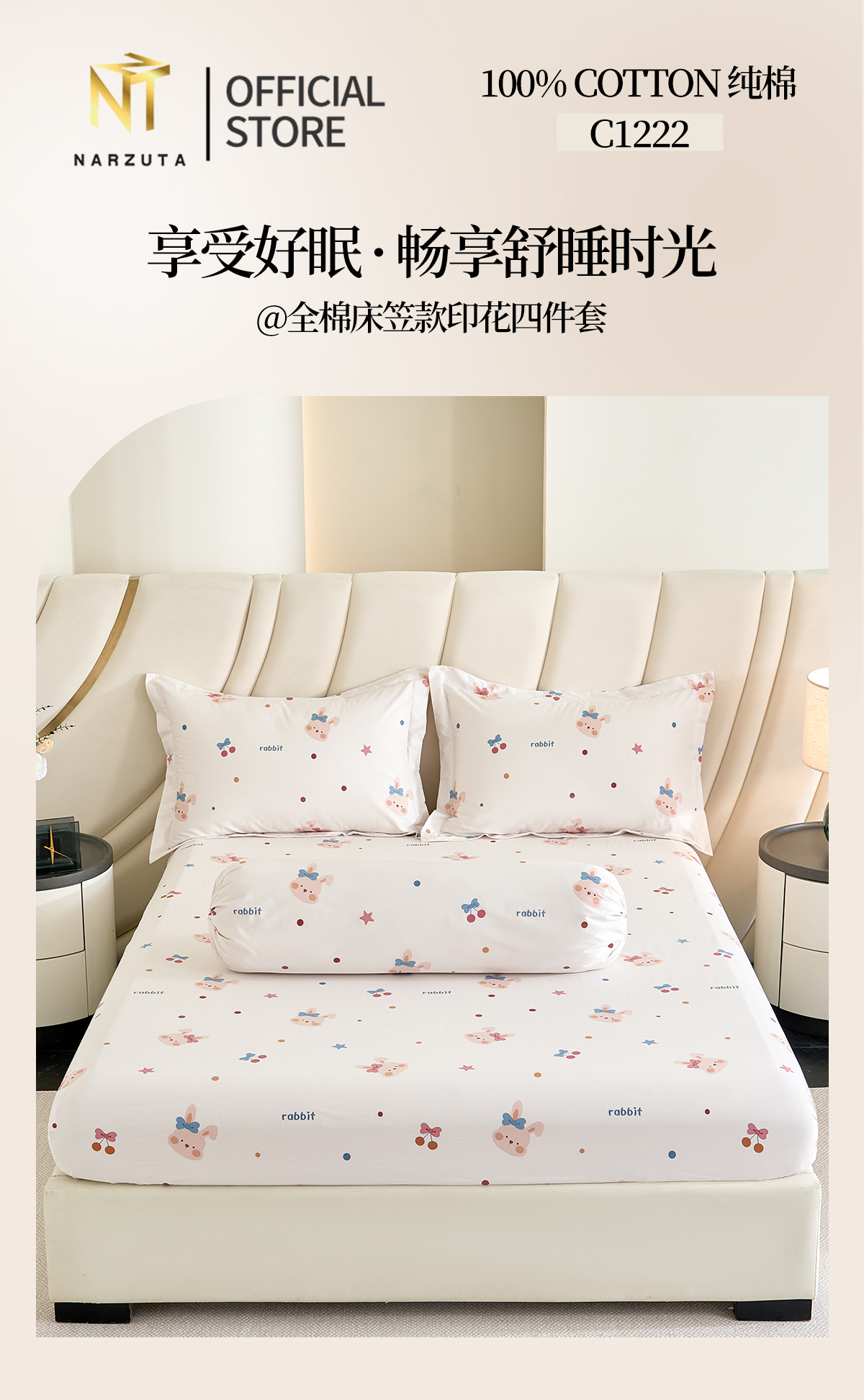 Queen 4in1 included: Fitted Sheet 153*192*43cm + 2 Pillow Cases + 1 Bolster Case